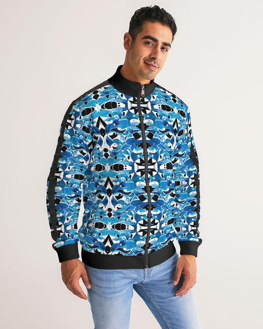 light blue Royal patten Men's All-Over Print Stripe Sleeve Track Jacket