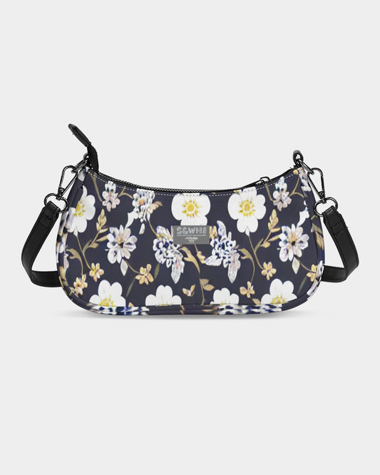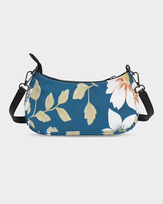 Dark blue background and white flower pattern Petite Canvas Pouch