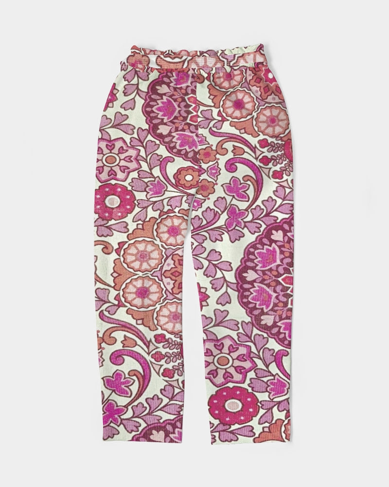 Pink Royal Abstract flower Women's All-Over Print Belted Tapered Pants