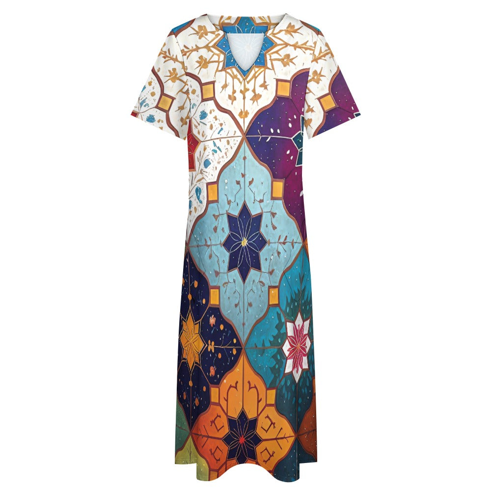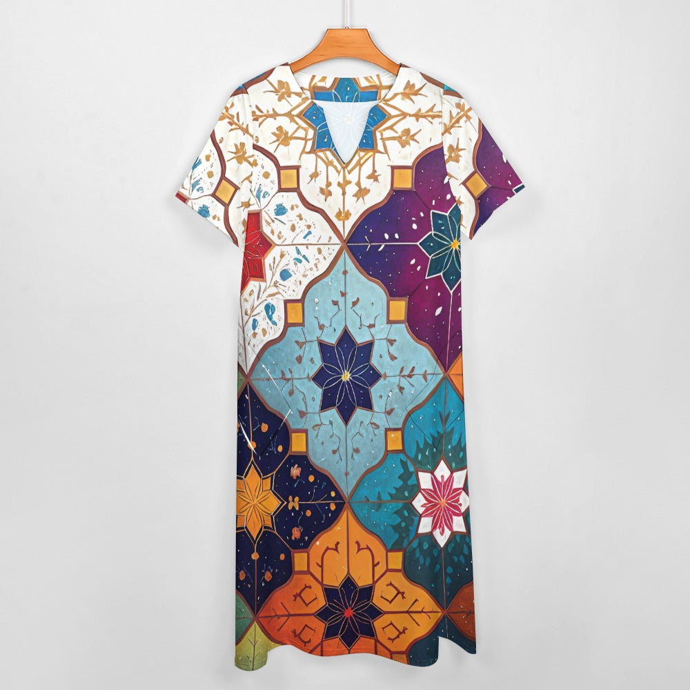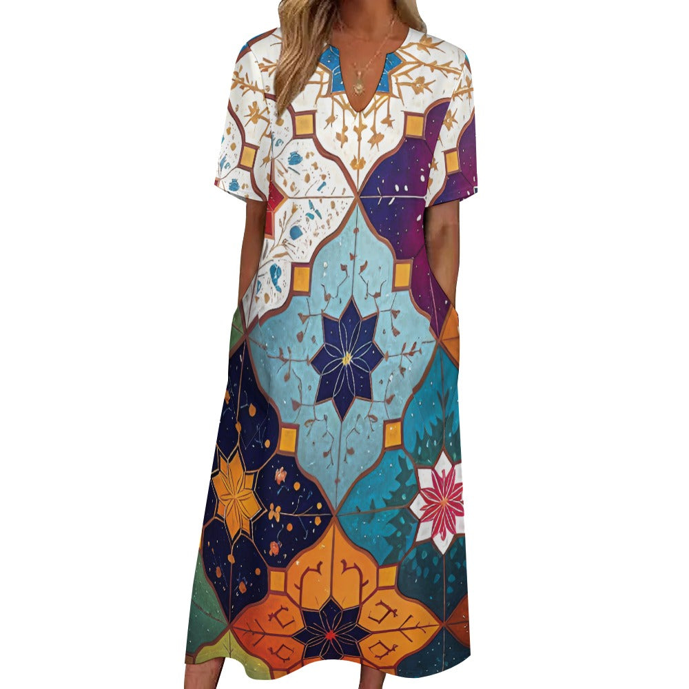 PREFERRED MATERIAL: Our dress set is made of polyester material, the fabric is soft and skin-friendly, and the texture is comfortable. Intimate design: Short sleeve design, fashion and simplicity, with V-neck design, sexy and beautiful. COMFORTABLE AND SOFT: Soft and comfortable fabrics make this suit extra comfortable. Let you dress comfortably and stylishly in your life. PERFECT GIFT: The perfect home gift for your wife, mother, daughter or friend.
