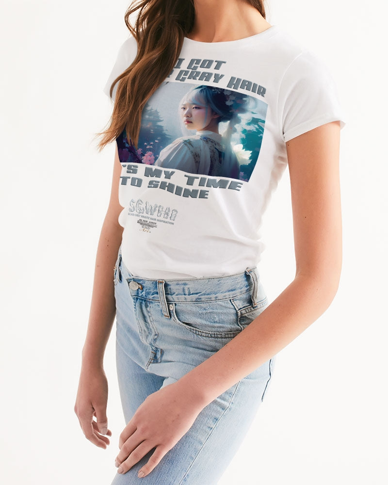 About The ArtAsian sister with silver grey hair Promoting Asians sisters with silver grey heir Product DetailsStep out with an instant classic! Dressed up or down, our fitted Women's Tee offers complete comfort and style. Handmade with premium wear resistant fabric, show off your curves with this carefully crafted tee.