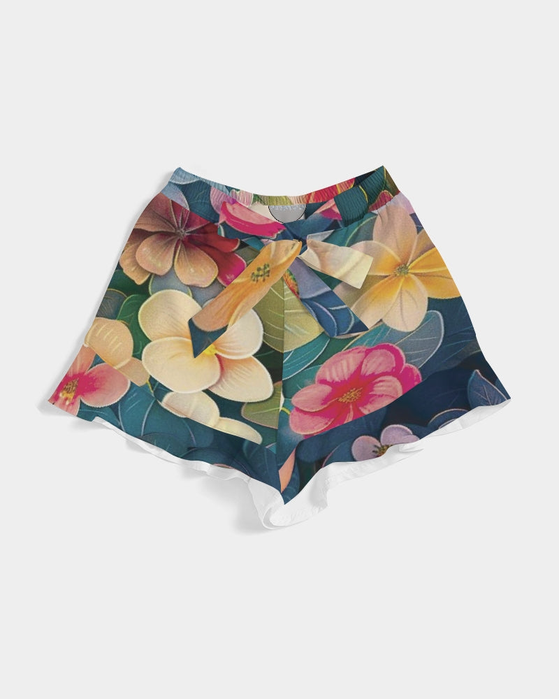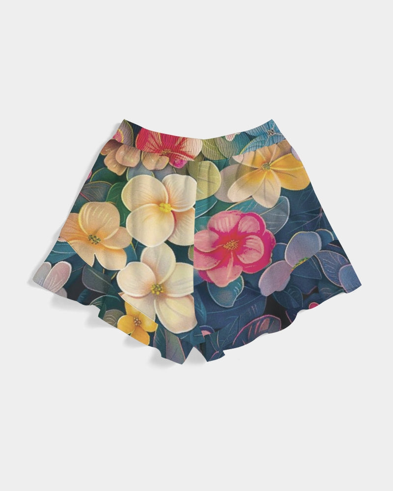 Dark summer blossom Women's All-Over Print Ruffle Shorts