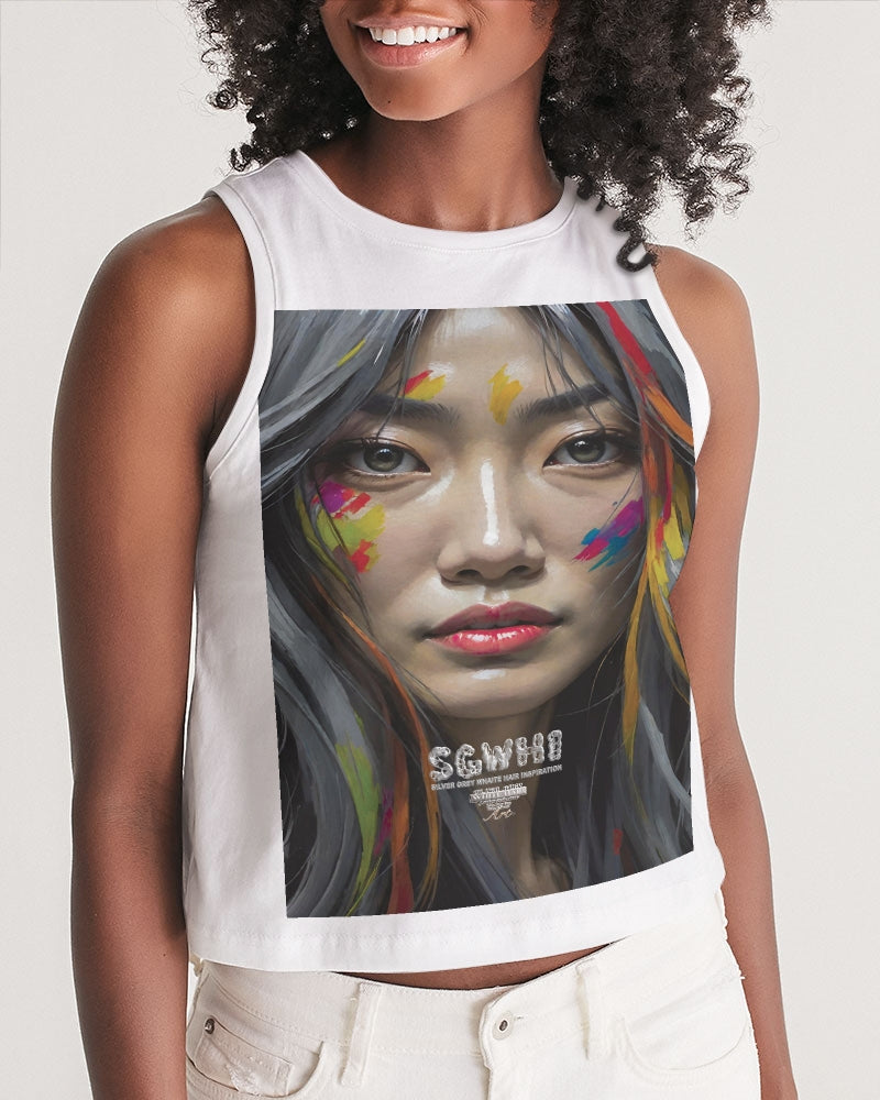 About The ArtAsian Collection (Part 2 ) This is part two of a three part collection promoting Asian women who have amazing silver grey white Hair.The portrait and pattern design has been inspired and influence by our amazing Asian style and culture. Product DetailsCrafted from soft fabric with a crew neckline and straight hem, our Women's Cropped Tank provides maximum comfort and a style that never fades.