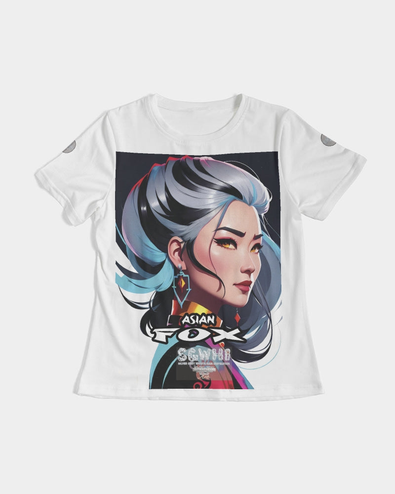 About The ArtAsian Fox Promoting our beautiful Asian sisters with silver grey here who see themselves as stylish foxes Product DetailsStep out with an instant classic! Dressed up or down, our fitted Women's Tee offers complete comfort and style. Handmade with premium wear resistant fabric, show off your curves with this carefully crafted tee.