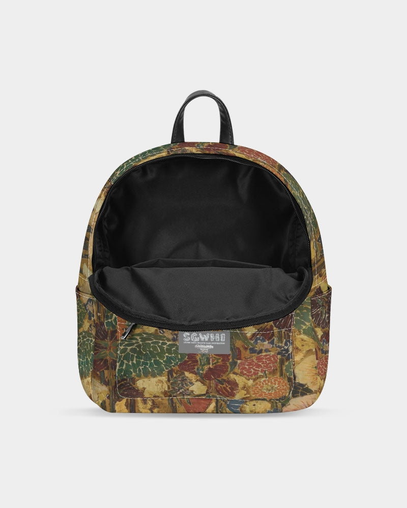 About The ArtAutumn play Exclusive patterns design from SGWHIWith beautiful flowers and an autumn colours. Product DetailsOur Mini Canvas Backpack is an ideal companion for trendsetters on the move. Its petite yet practical design ensures you can keep your essentials organized and close at hand, whether you're exploring the city, attending a music festival, or simply running errands.