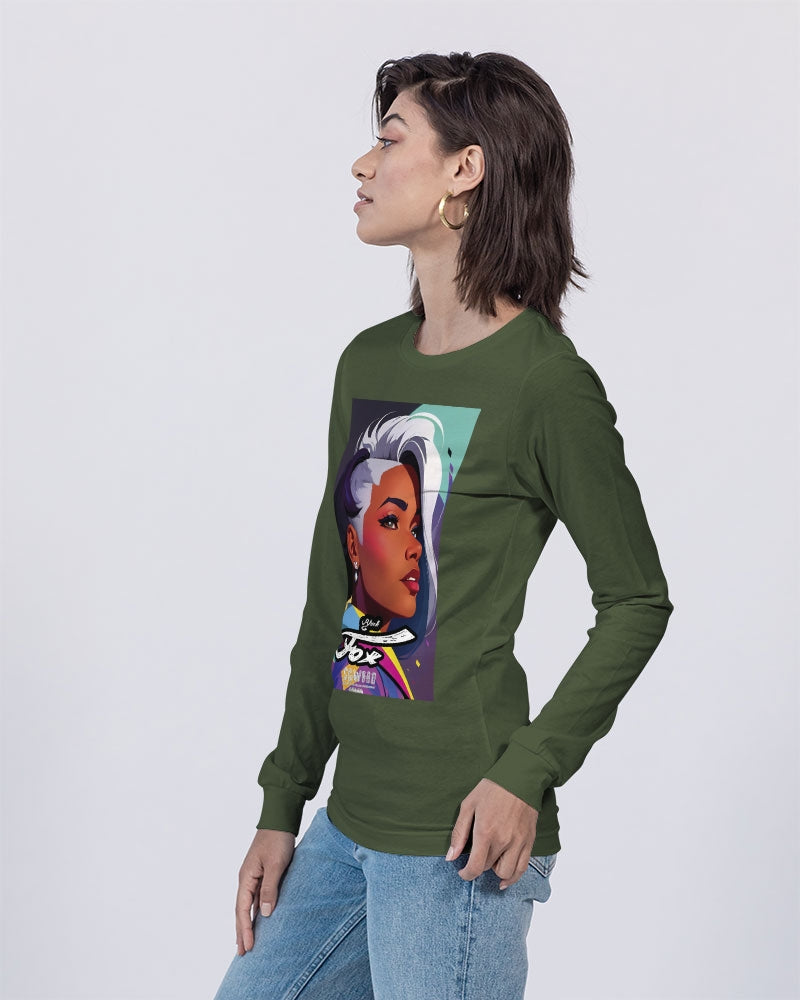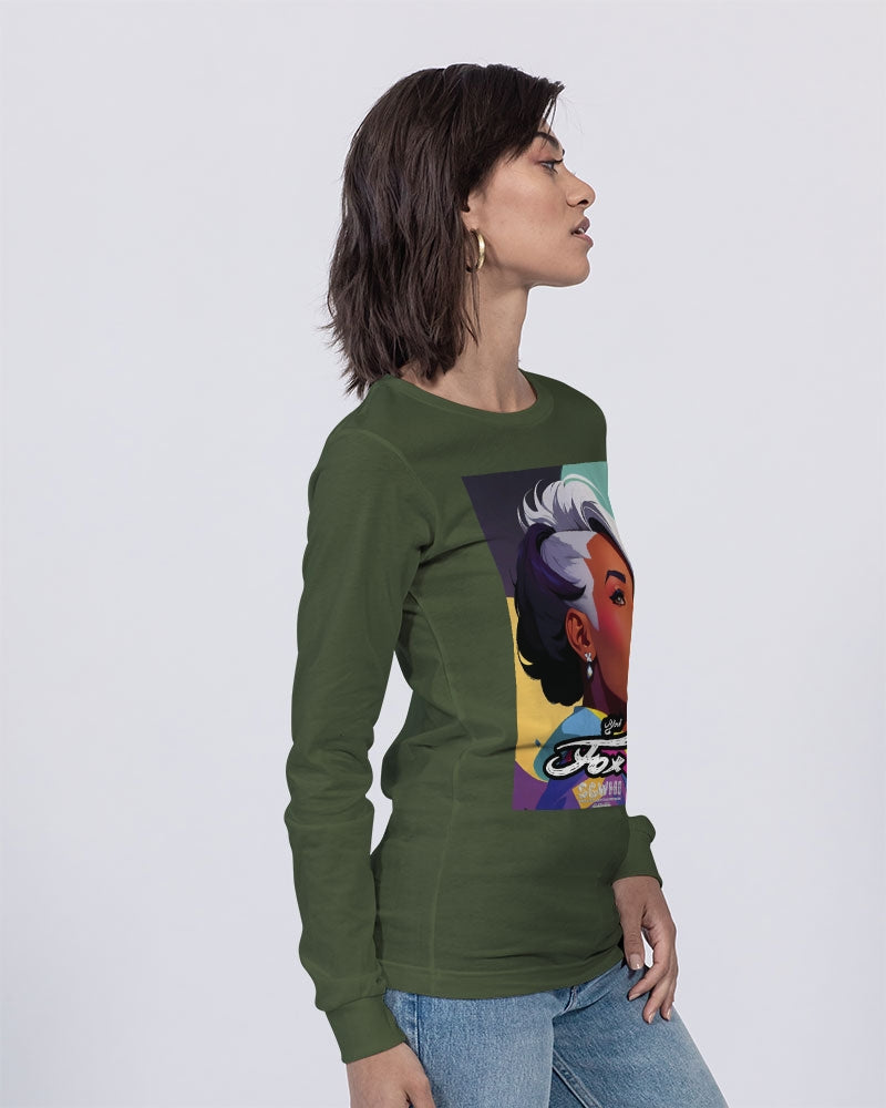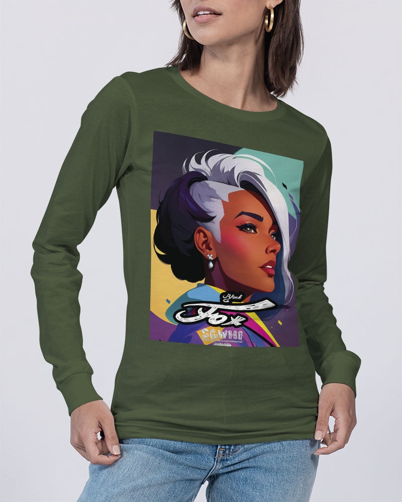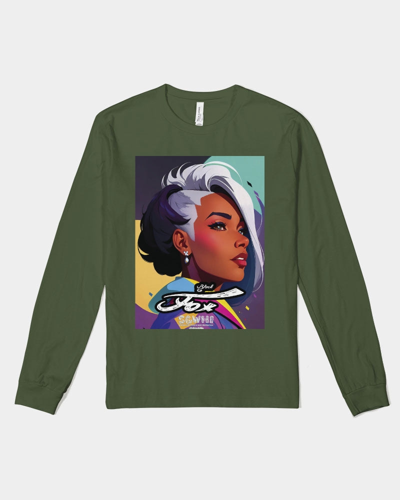 About The ArtBlack Fox Promoting our black sisters who have silver grey white hear that see themselves as stylish black foxes Product DetailsThe perfect unisex Long Sleeve T-shirt for relaxed comfort, featuring a crew neckline, ribbed collar and cuffs, and straight hem. Bella + Canvas is known for their Retail Fit, which is more fitted than a standard t-shirt. They are designed to contour the body more closely with more form-fitting lines around the shoulders, arms, and torso.