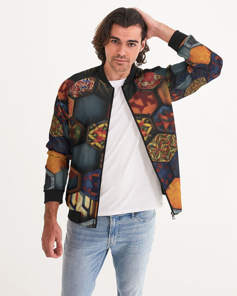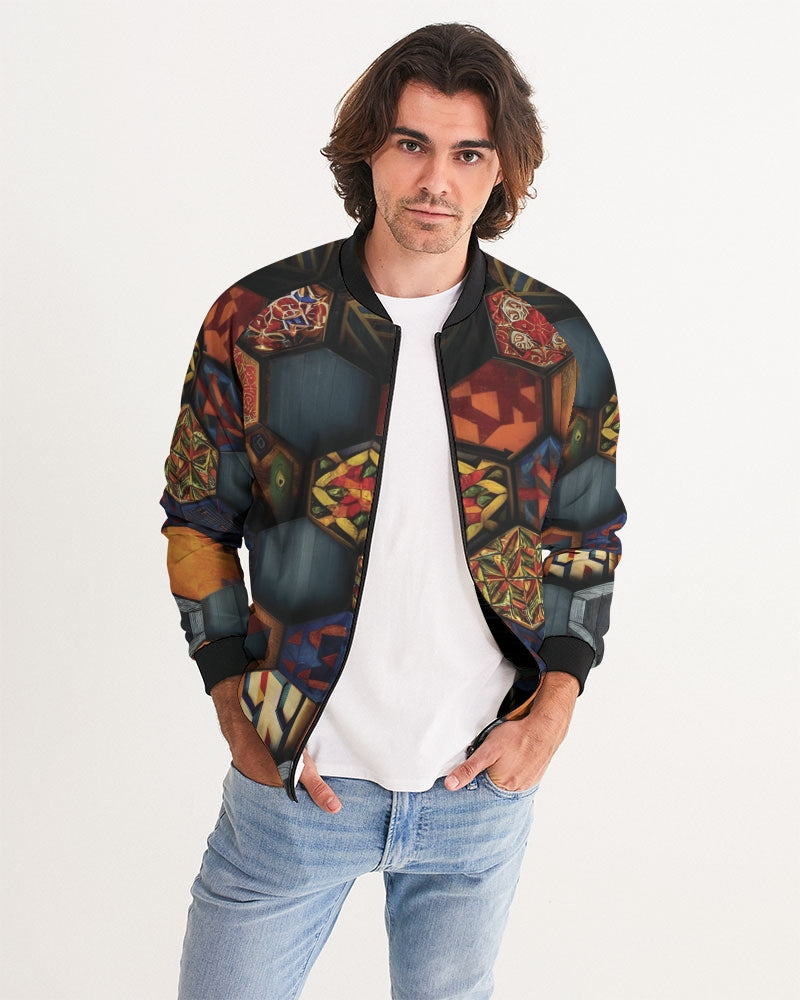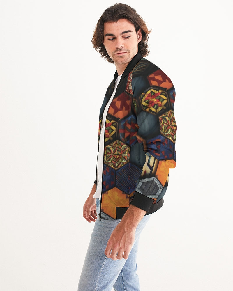 About The ArtMen flower Hexagon patten. men's Hexagon style patten for men Beautiful shop pattern design. Product DetailsHand-cut and crafted with care, your custom designed Men's Bomber Jacket is great for casual or sportswear. Its lightweight, airy fabric is lined with the perfect amount of insulation for the chillier months making this a great year round go-to.