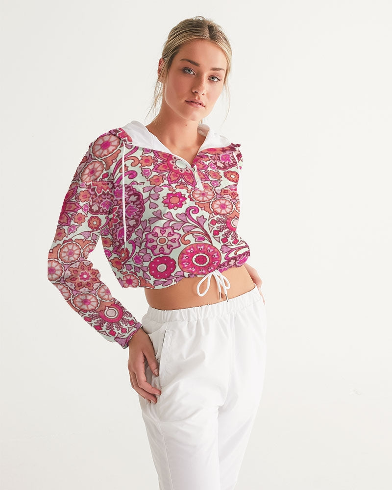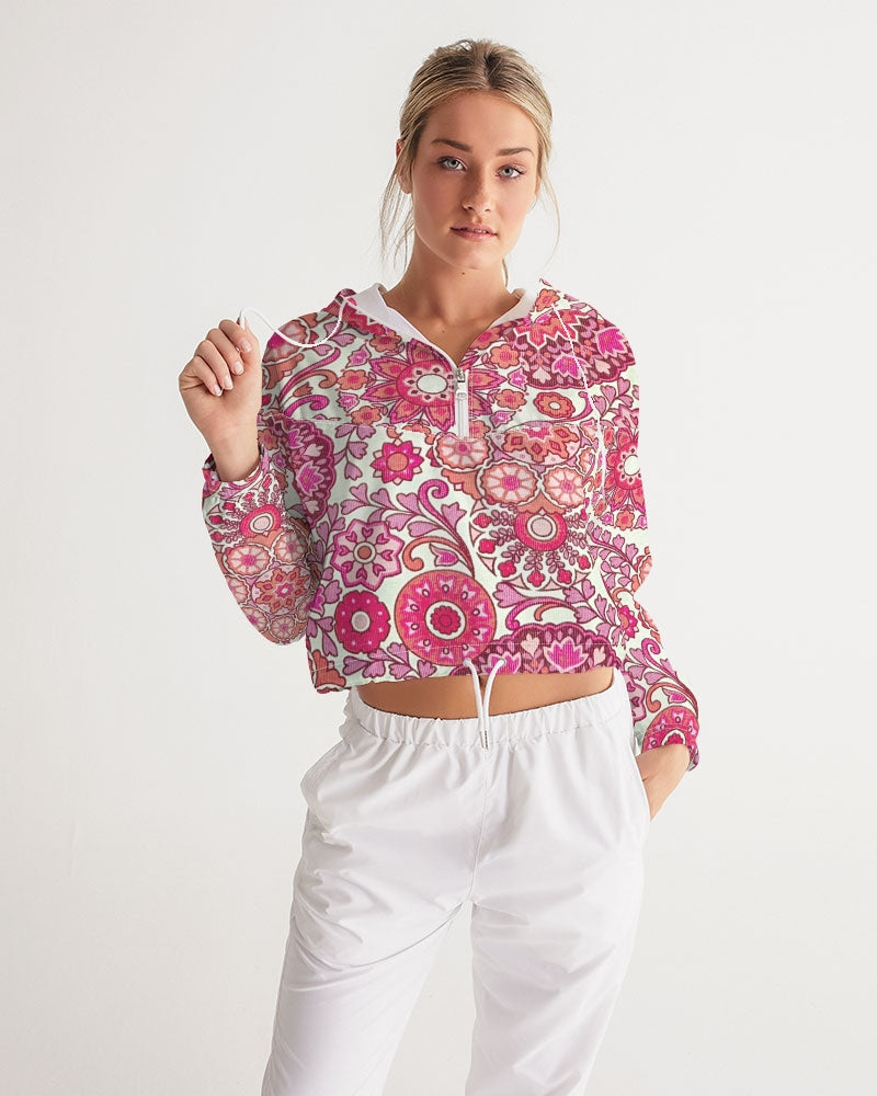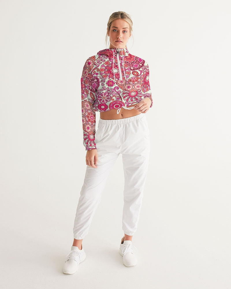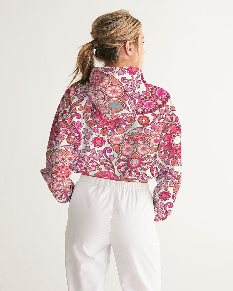 Pink Royal Abstract flower Women's All-Over Print Cropped Windbreaker
