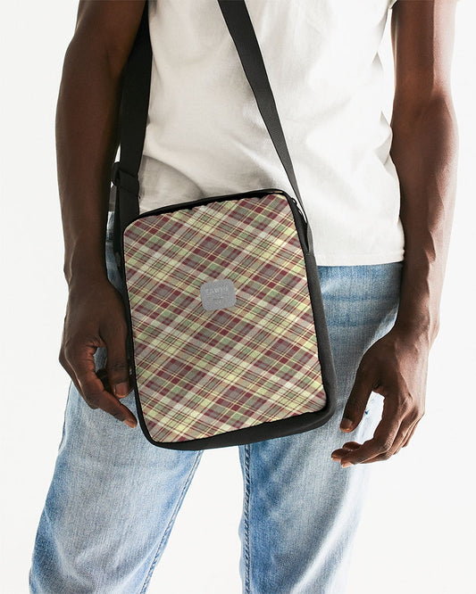 Distinguish Beige and burgundy tartan Messenger Pouch