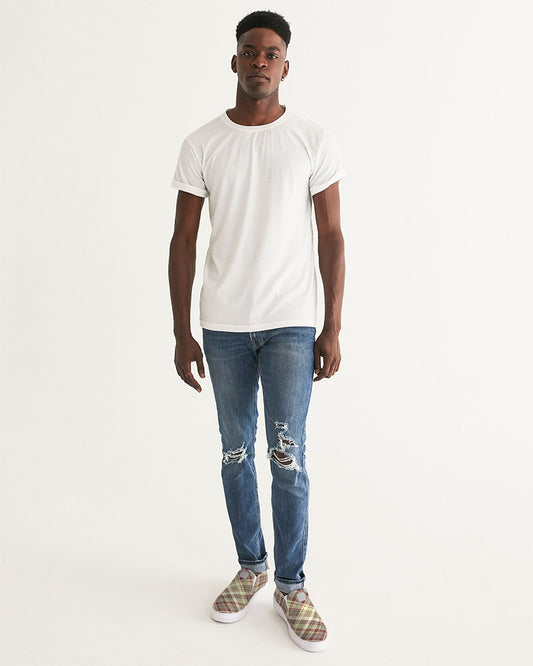 Distinguish Beige and burgundy tartan Men's Slip-On Canvas Shoe