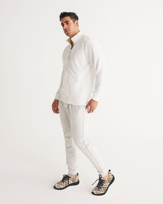 Distinguish Beige and burgundy tartan Men's Athletic Shoe - Black