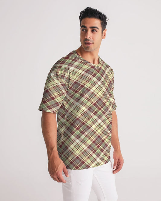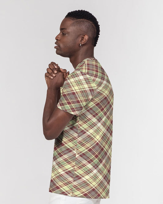 Distinguish Beige and burgundy tartan Men's All-Over Print Pocket Tee