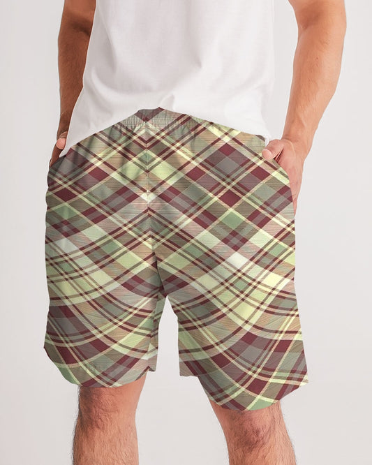 Distinguish Beige and burgundy tartan Men's All-Over Print Jogger Shorts