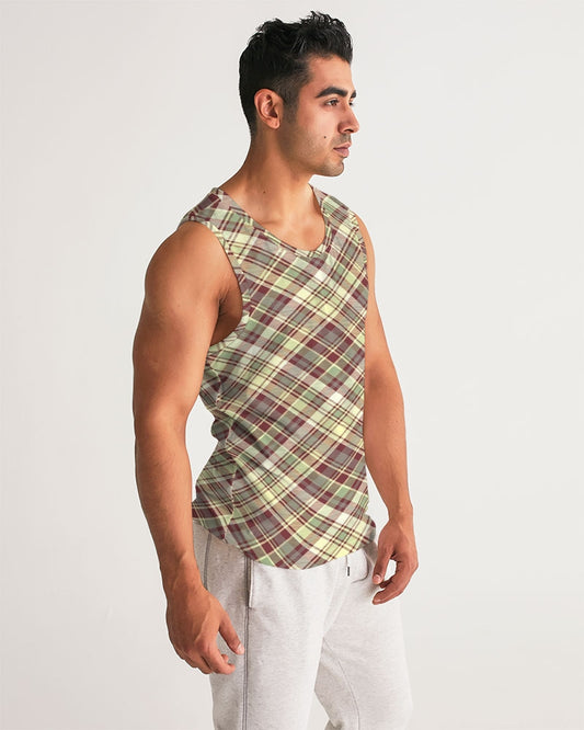 Distinguish Beige and burgundy tartan Men's All-Over Print Sport Tank