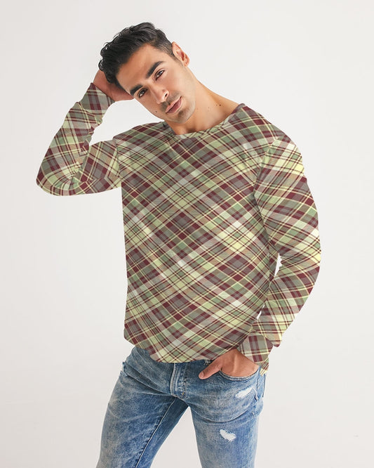 Distinguish Beige and burgundy tartan Men's All-Over Print Long Sleeve Tee