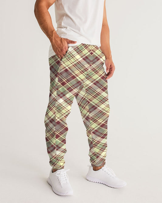 Distinguish Beige and burgundy tartan Men's All-Over Print Joggers