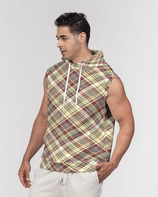 Distinguish Beige and burgundy tartan Men's All-Over Print Heavyweight Sleeveless Hoodie