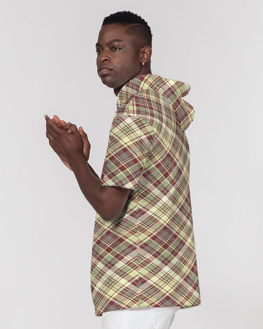 Distinguish Beige and burgundy tartan Men's All-Over Print Premium Heavyweight Short Sleeve Hoodie
