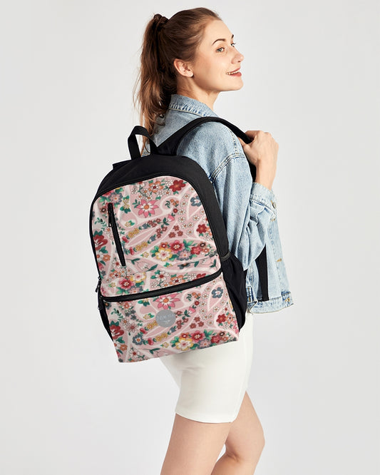 Pink abstract Pretty Sisters Duo-Zip Front Canvas Backpack