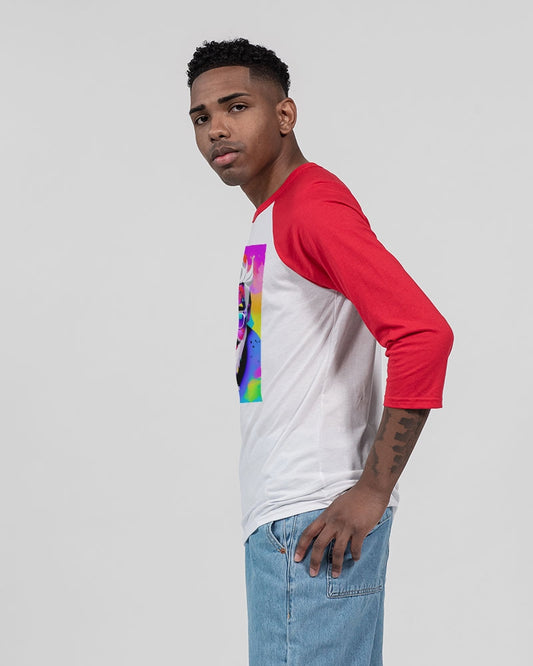 Handsome Asian brother pink painted portrait Unisex Three-Quarter Sleeve Baseball Tee | Bella + Canvas