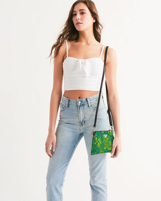 Lush green flower pattern design with logo Wristlet