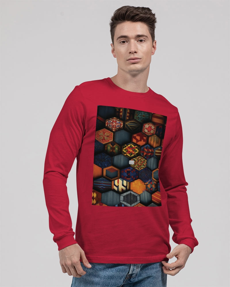 Men flower Hexagon patten. Unisex Jersey Long Sleeve Tee | Bella + Canvas