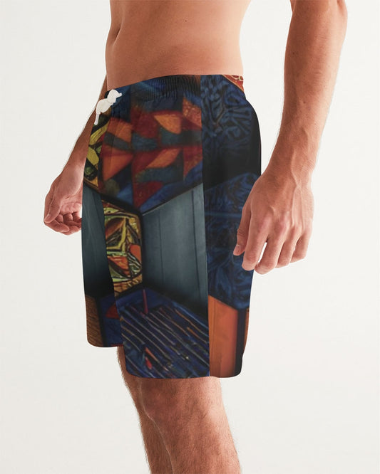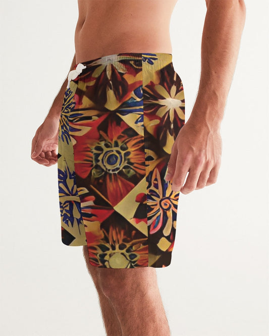 Men flower Hexagon patten. Men's All-Over Print Swim Trunk
