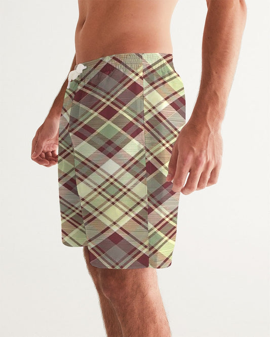 Distinguish Beige and burgundy tartan Men's All-Over Print Swim Trunk