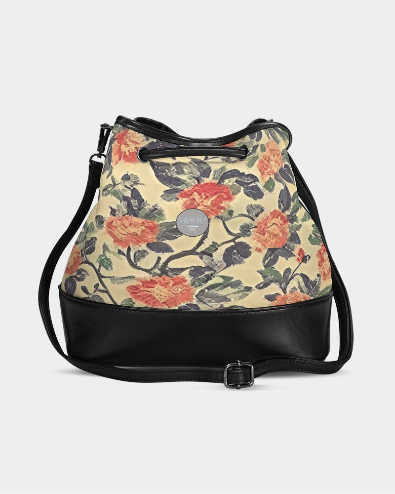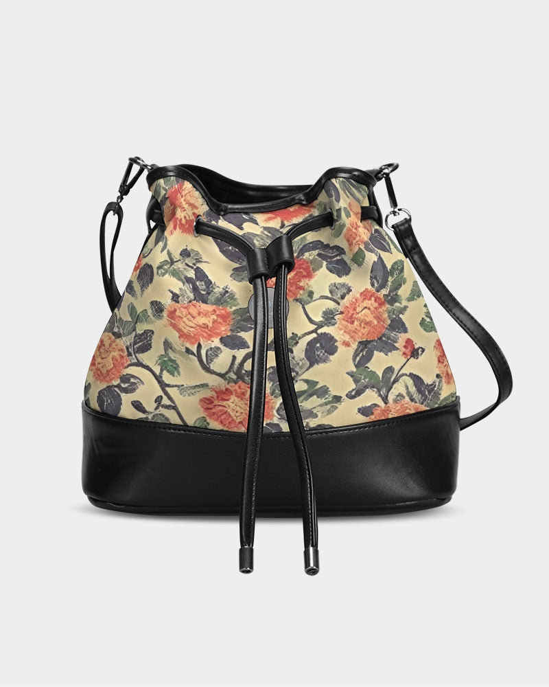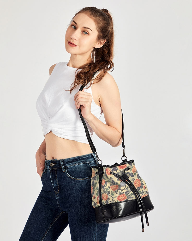 Orange Spring Blossom Mini Drawstring Bucket Bag