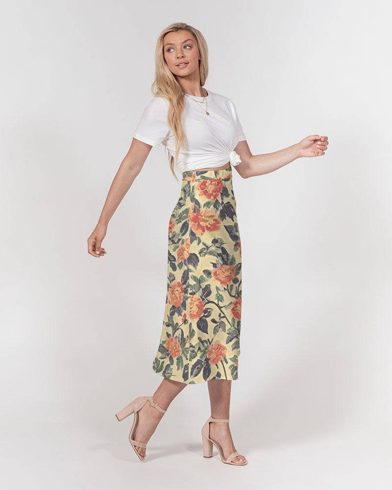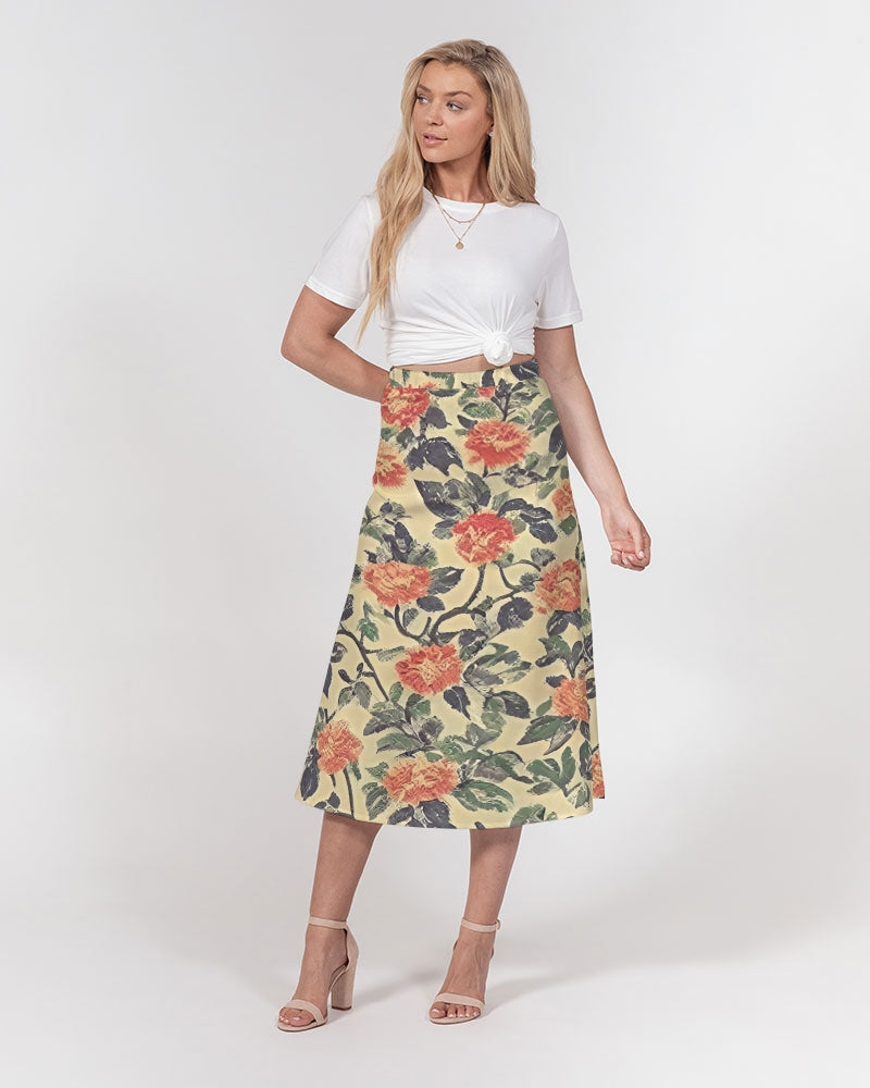 Orange Spring Blossom Women's All-Over Print A-Line Midi Skirt