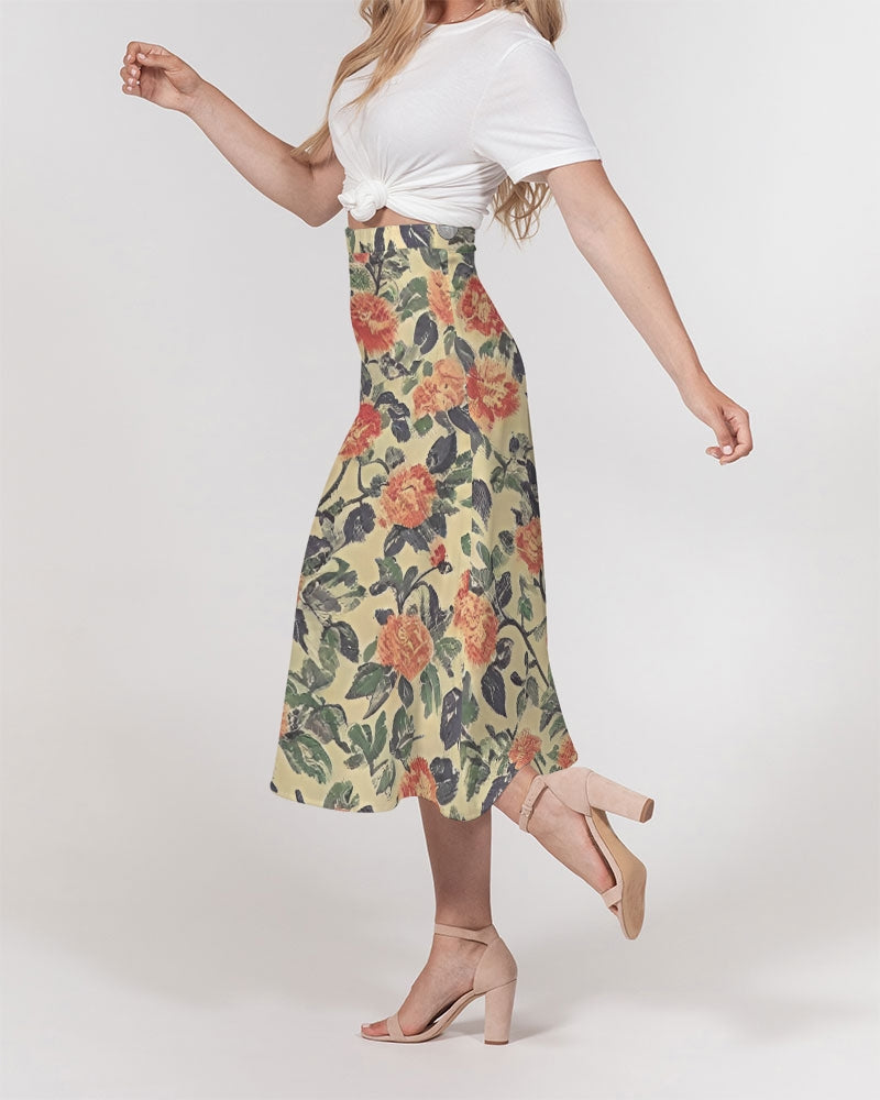 About The ArtOrange Spring Blossom In line 2025, opening spring pattern, orange spring, blossom, beautiful pattern to start the season Product DetailsTimeless and chic, our Women's A-line Midi Skirt is made from a beautifully draped smooth chiffon. Polished with a thick waistband and side zipper, it's fitted at your waist and has a flowy bottom.