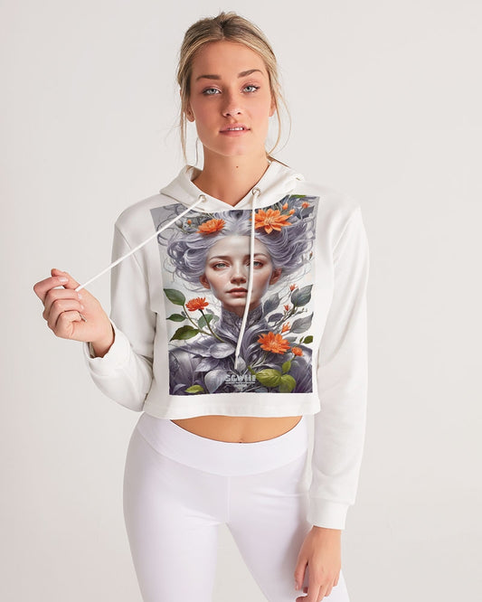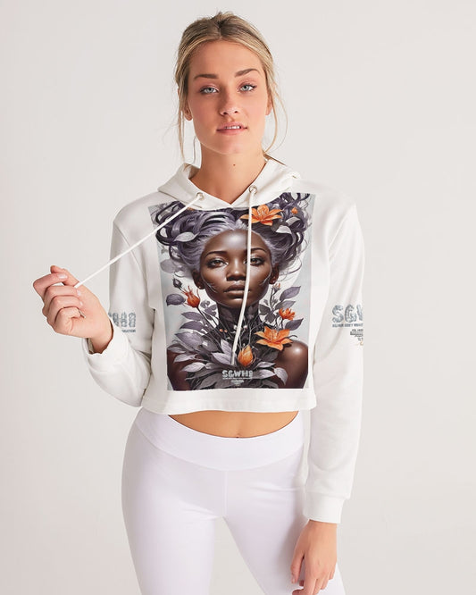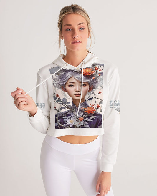 Beautiful white sister grey hair blossom Women's All-Over Print Cropped Hoodie