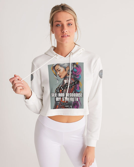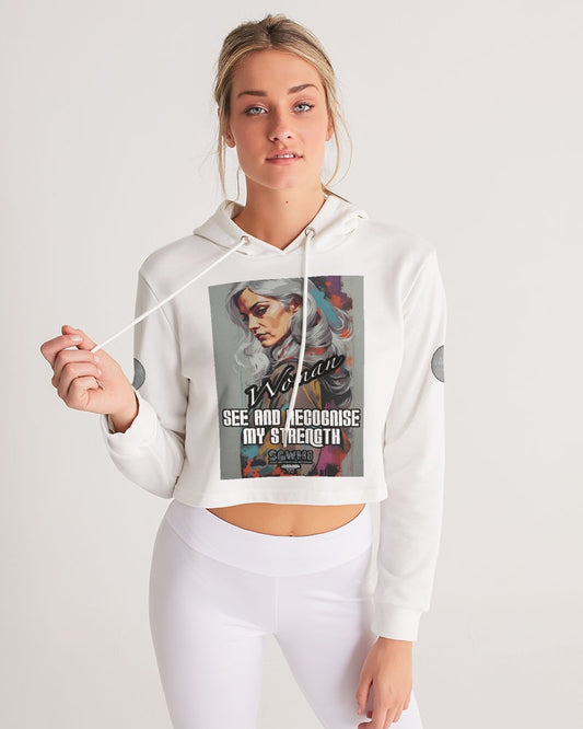 Women. See and recognise my strength [ White sister ] Women's All-Over Print Cropped Hoodie