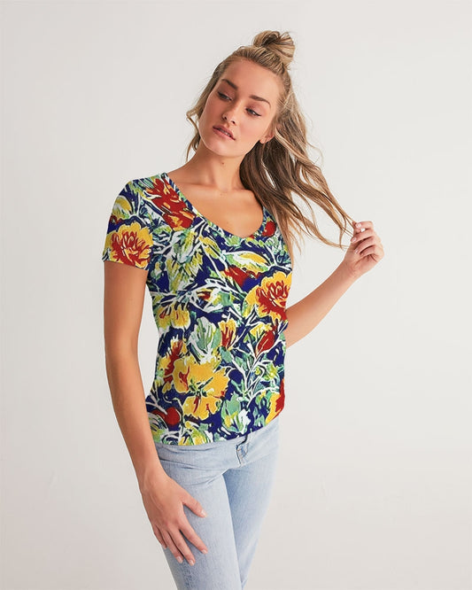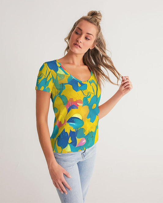 Beautiful yellow and blue hint of red pattern Women's V-Neck Tee