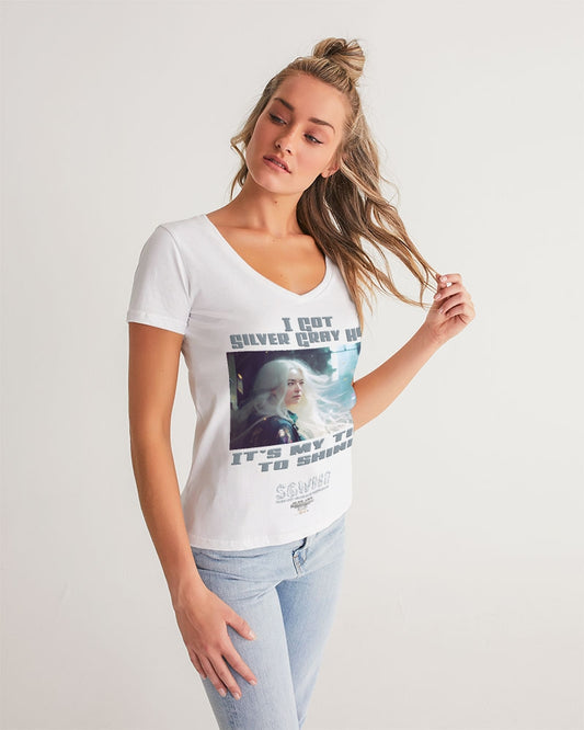 Beautiful white woman my time to shine Women's All-Over Print V-Neck Tee