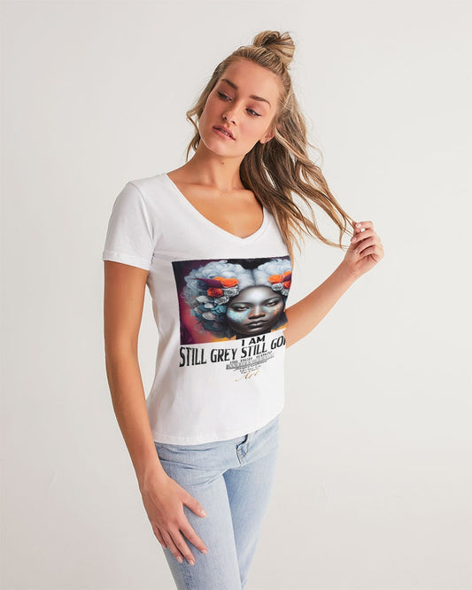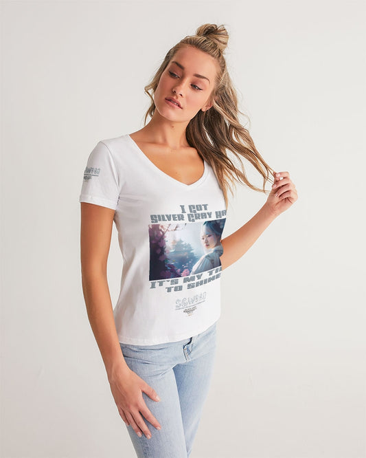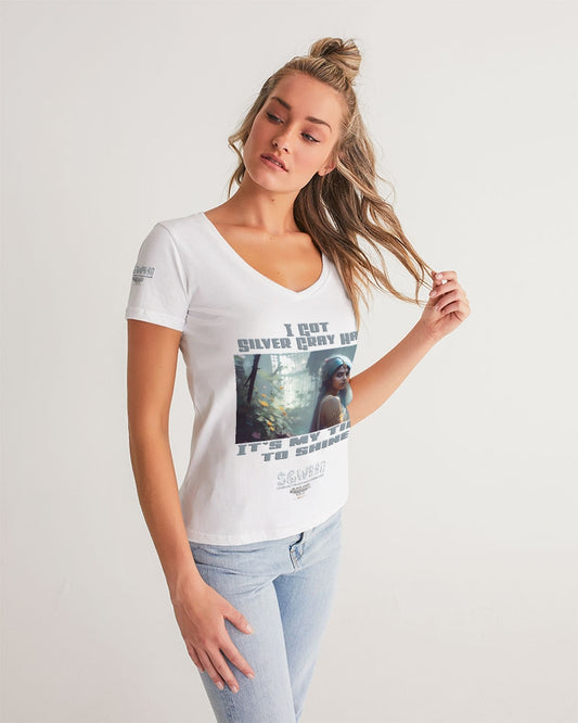 Promoting black women with silver grey hair Women's V-Neck Tee