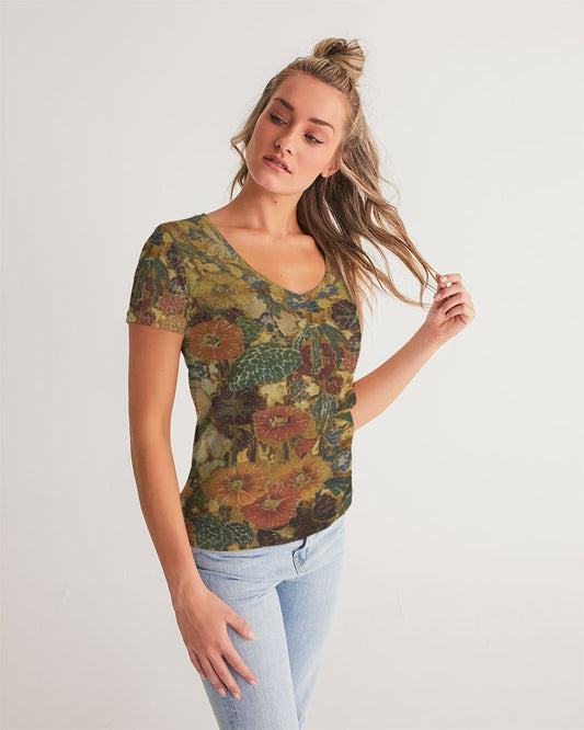 Beautiful blood orange flower design Women's All-Over Print V-Neck Tee