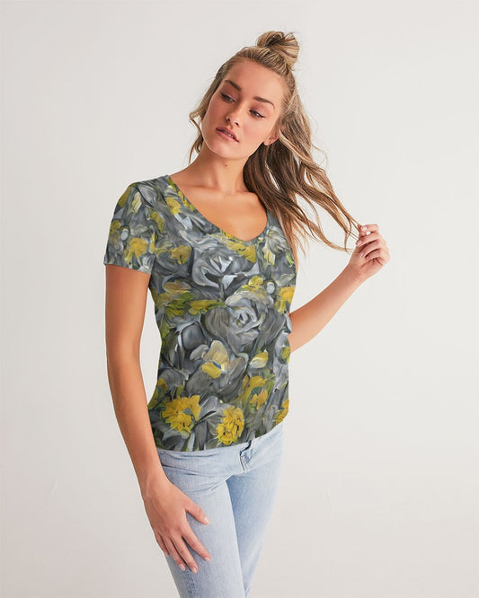Sweet Silver Yellow Flower Grey Hair sister.[Part three] Women's All-Over Print V-Neck Tee
