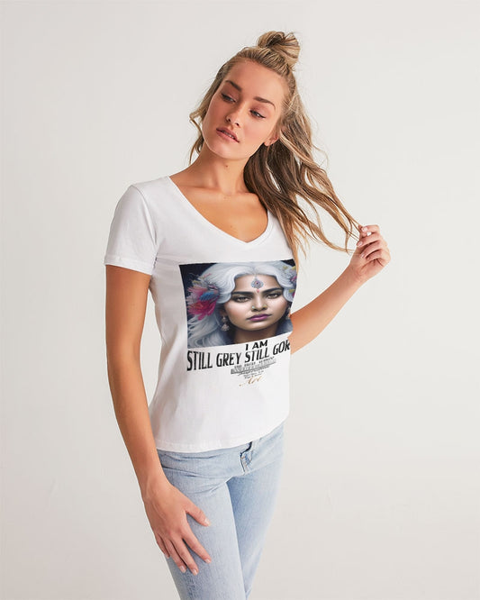 Promoting Indian women with silver grey hair Women's V-Neck Tee
