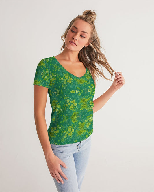 Green lush Repeat pattern Women's V-Neck Tee