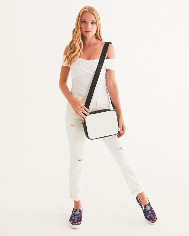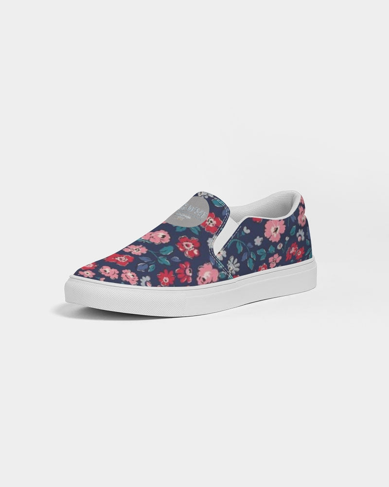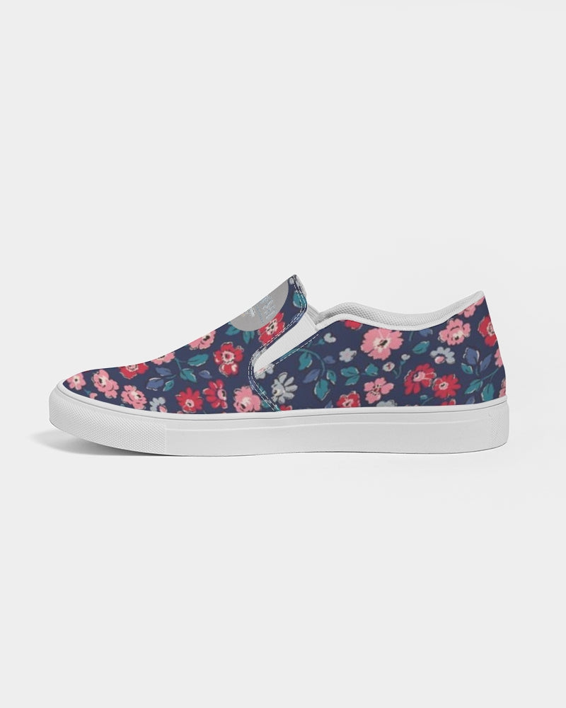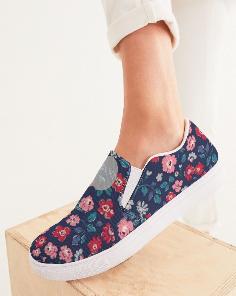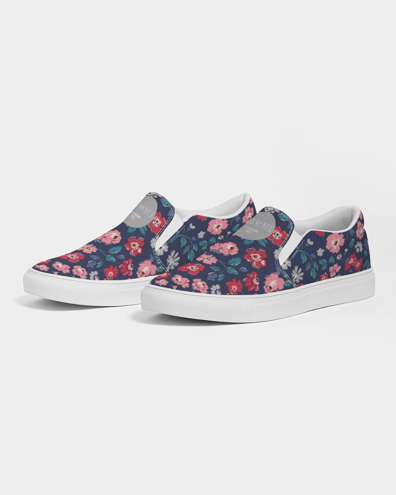 About The ArtMidnight blue pretty glance. Beautiful array of small gorgeous flowers pattern with a dark blue ambience. Exclusive pattern or portrait design from SGWHI. Product DetailsYour classic Women's Slip-On Canvas Shoe is great for day to night wear. Equipped with removable soft insoles and rubber outsoles, its easy on/off can be worn with all day comfort.