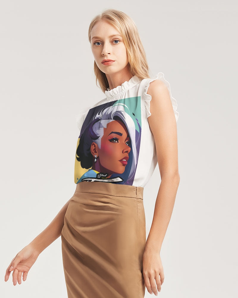 Black Fox Women's All-Over Print Ruffle Sleeve Top