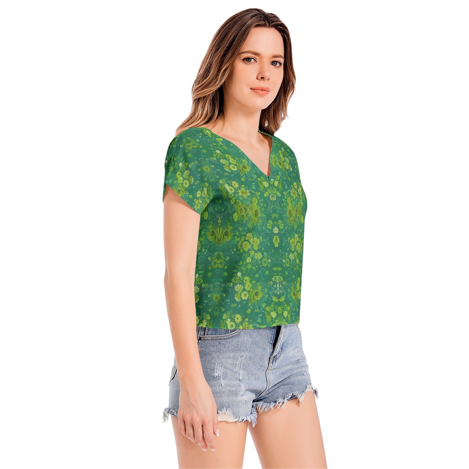 Silver grey white hair inspiration Batwing Sleeve V-Neck Top