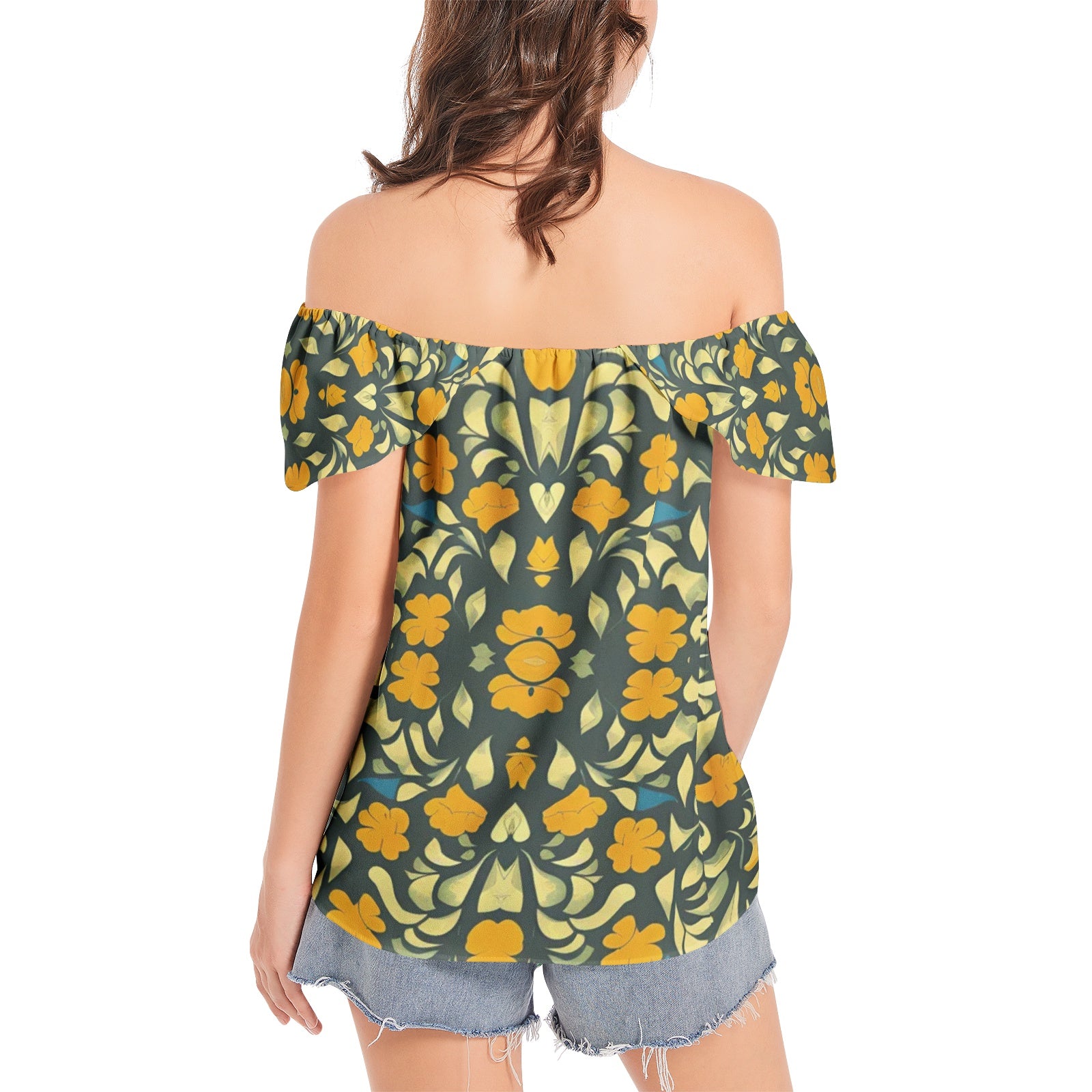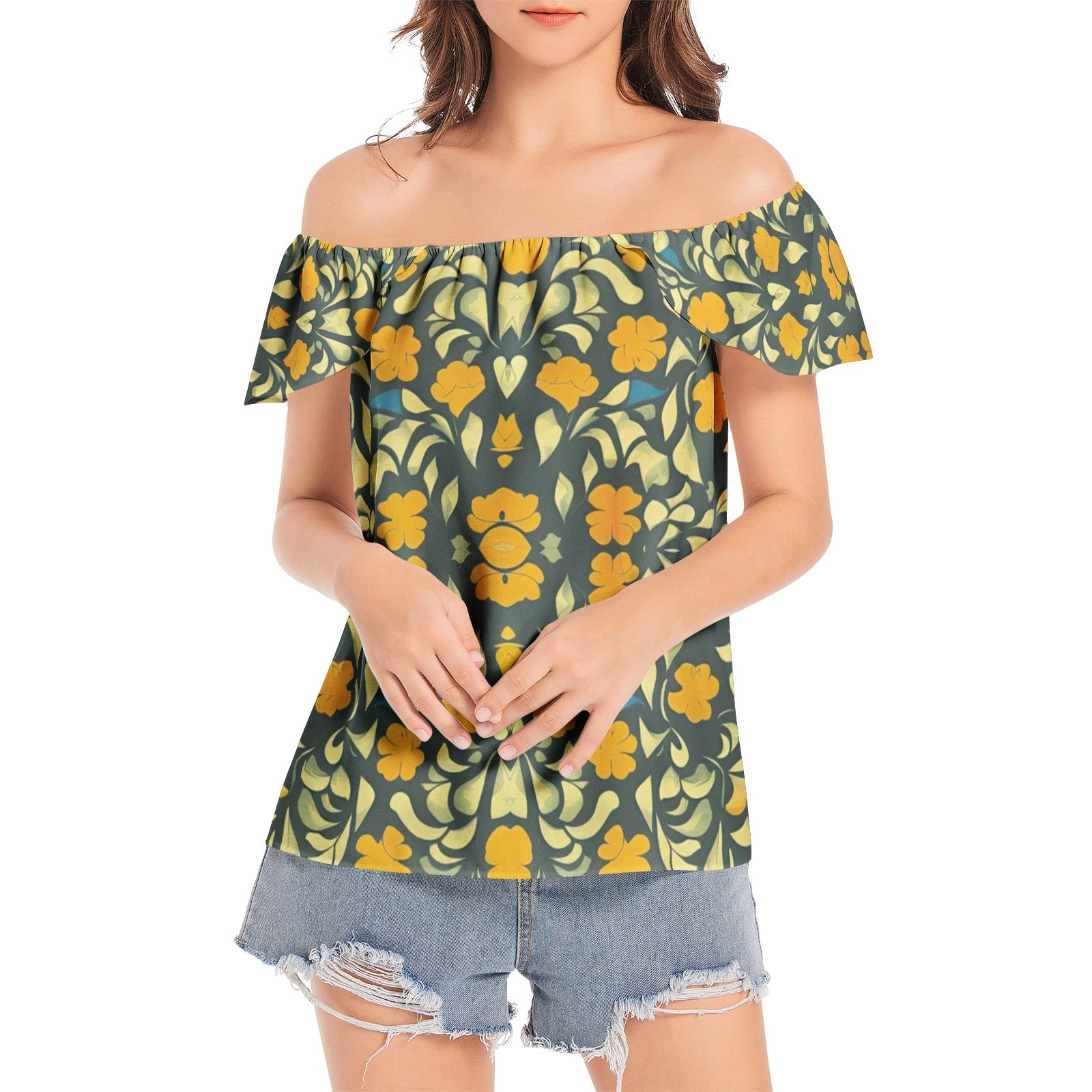 Flounce sleeve, Off the shoulder, Pull on closure, Casual women's top