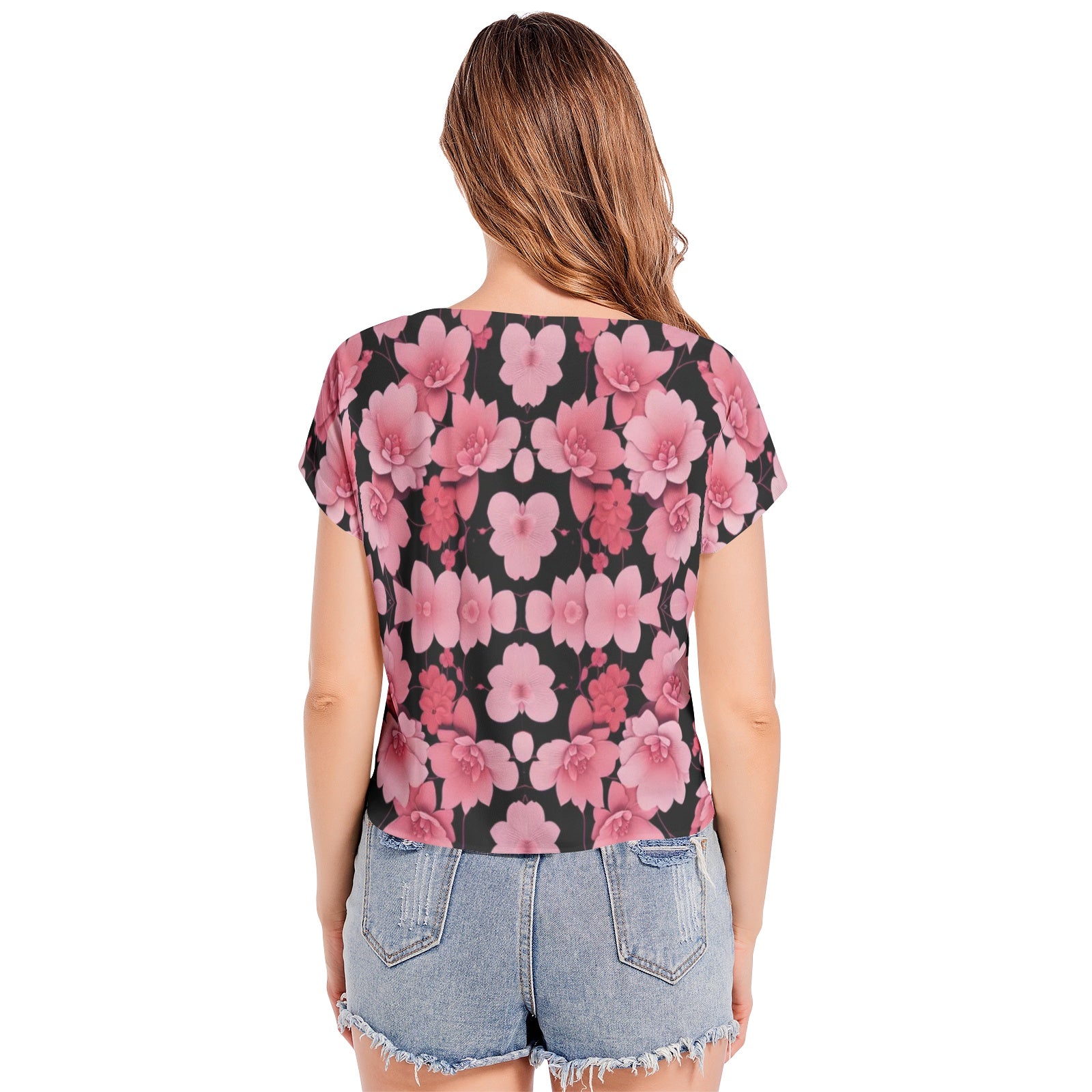 Silver grey white hair inspiration Sleeve V-Neck pink flower Top
