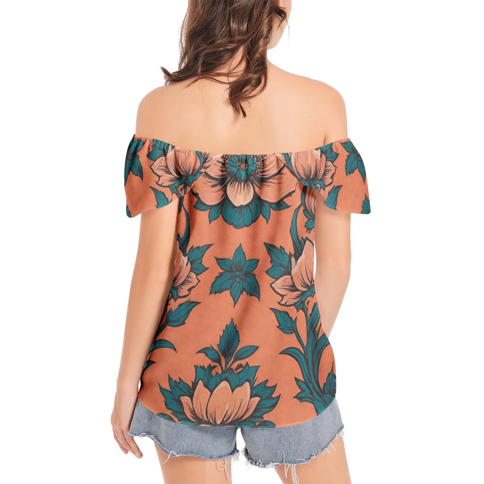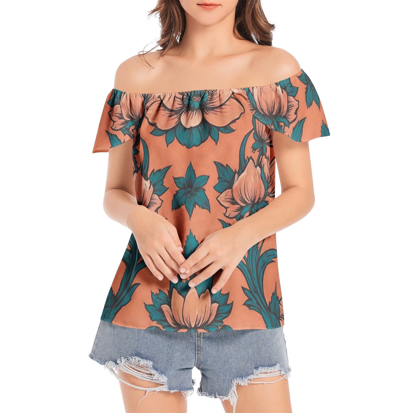 Flounce sleeve, Off the shoulder, Pull on closure, Casual women's top