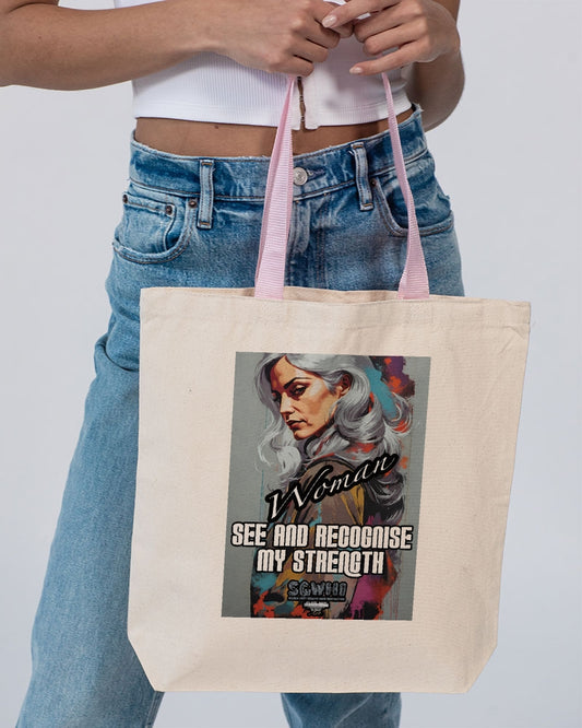Women. See and recognise my strength [ White sister ] Canvas Tote with Contrast-Color Handles | Q-Tees