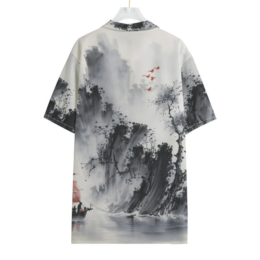 All-Over Print Men's Hawaiian Shirt With Button Closure