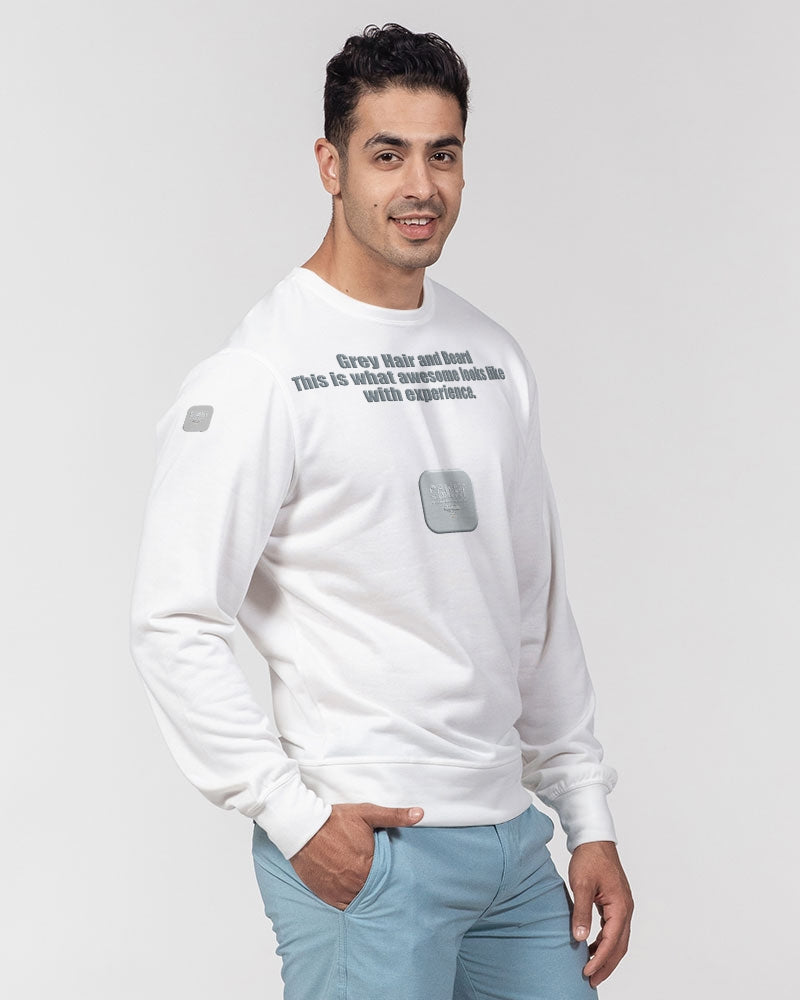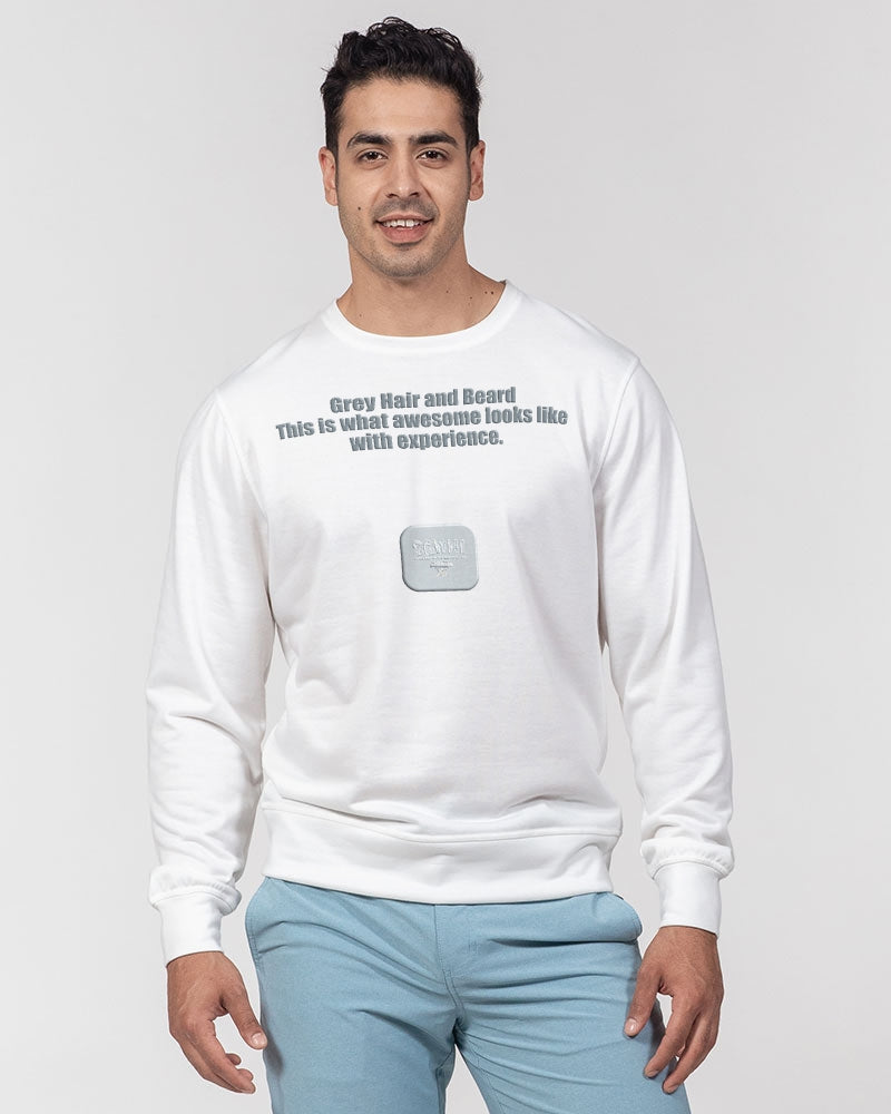 About The ArtGrey H & B This is what awesome looks like with experience. Grey Hair and Beard This is what awesome looks like with experience.Promoting men with silver grey hair, we have an encouraging quote, Product DetailsYou can never have too many classics, including our Men's Classic French Terry Crewneck Pullover. Its regular fit is not too big, but not too tight so you can layer it or wear it alone. Finished with a smooth surface on the outside and loop knitting inside for the right amount of warmth and comfort.