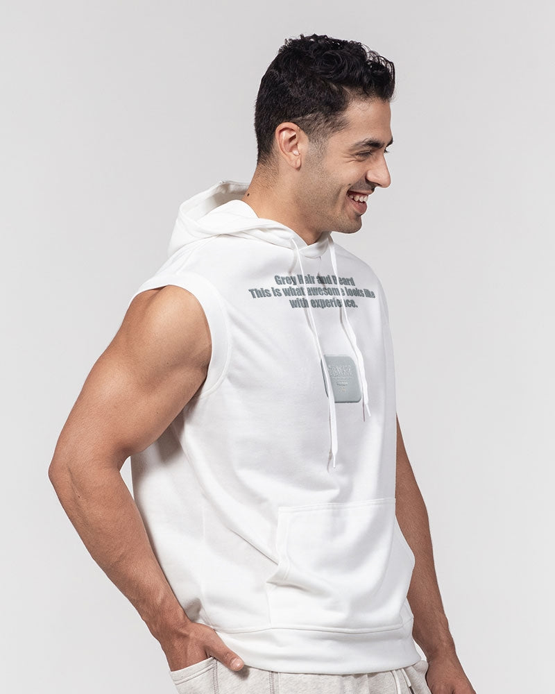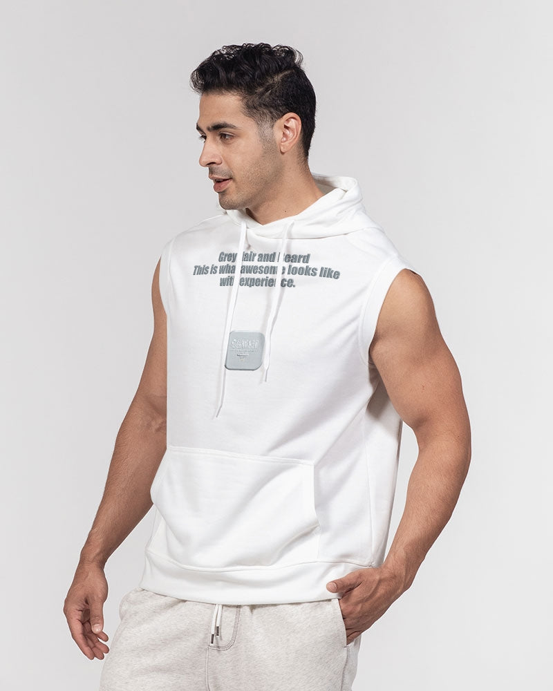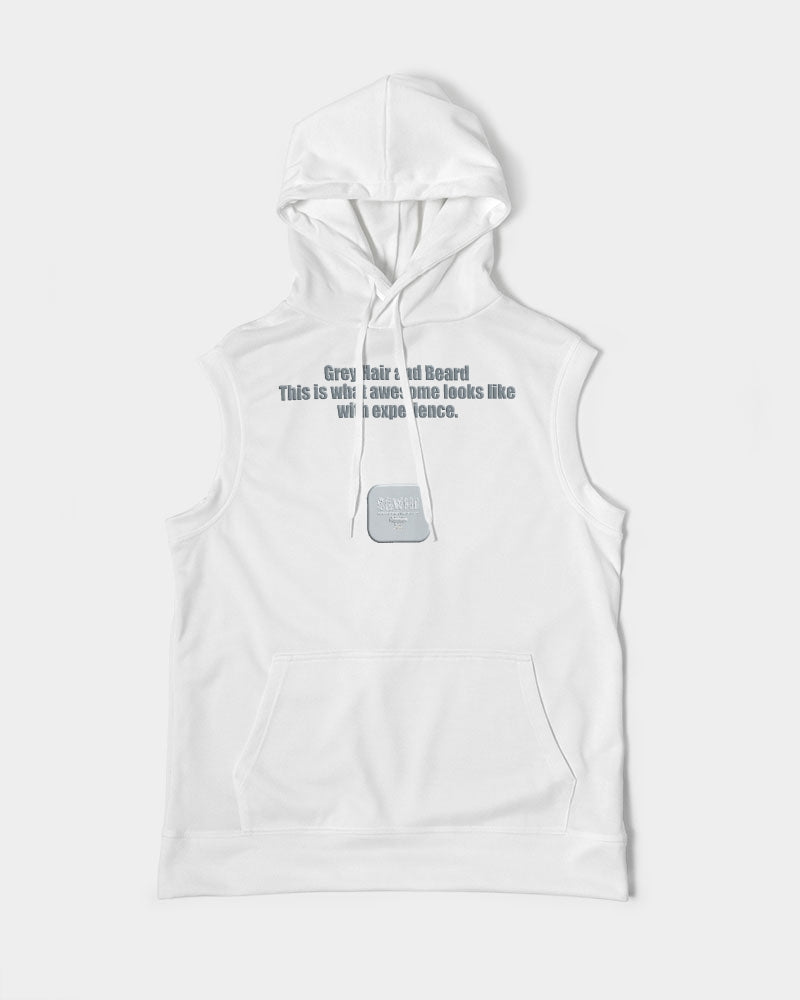 About The ArtGrey H & B This is what awesome looks like with experience. Grey Hair and Beard This is what awesome looks like with experience.Promoting men with silver grey hair, we have an encouraging quote, Product DetailsOur Men's Premium Heavyweight Sleeveless Hoodie is built for comfort and perfect for lounging or at the gym. Finished with an adjustable drawstring hood, front hand pocket, and sleeveless styling for optimal movement.